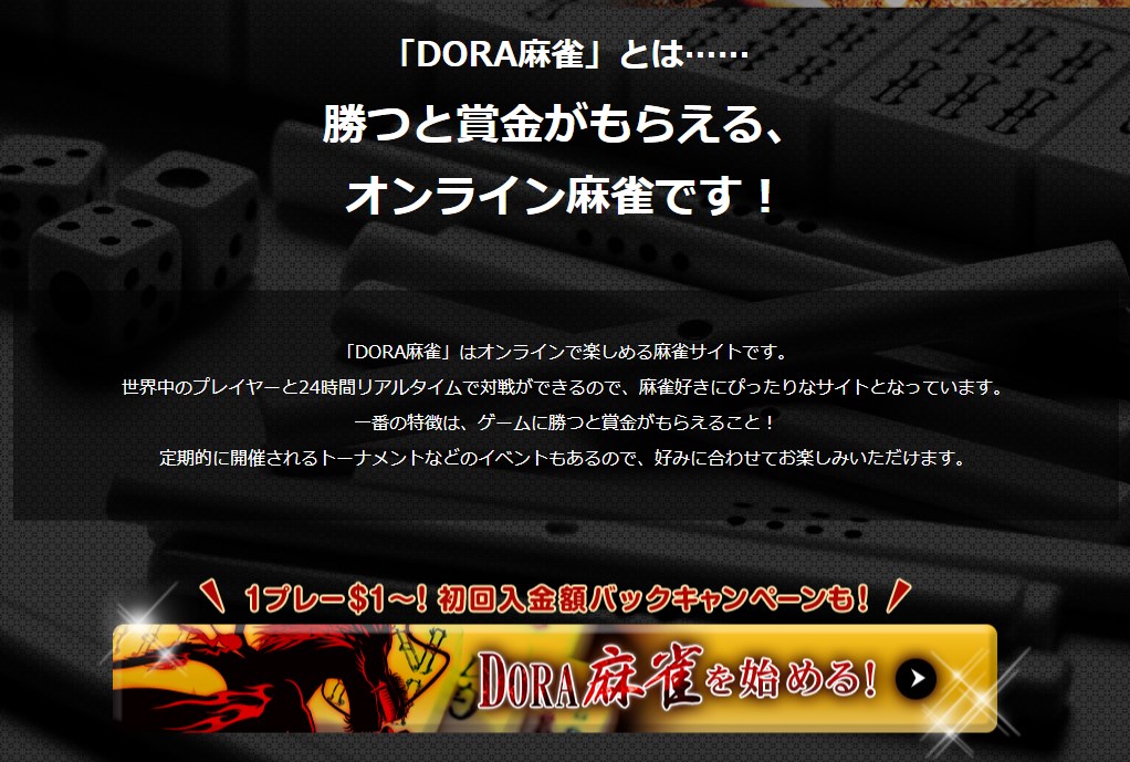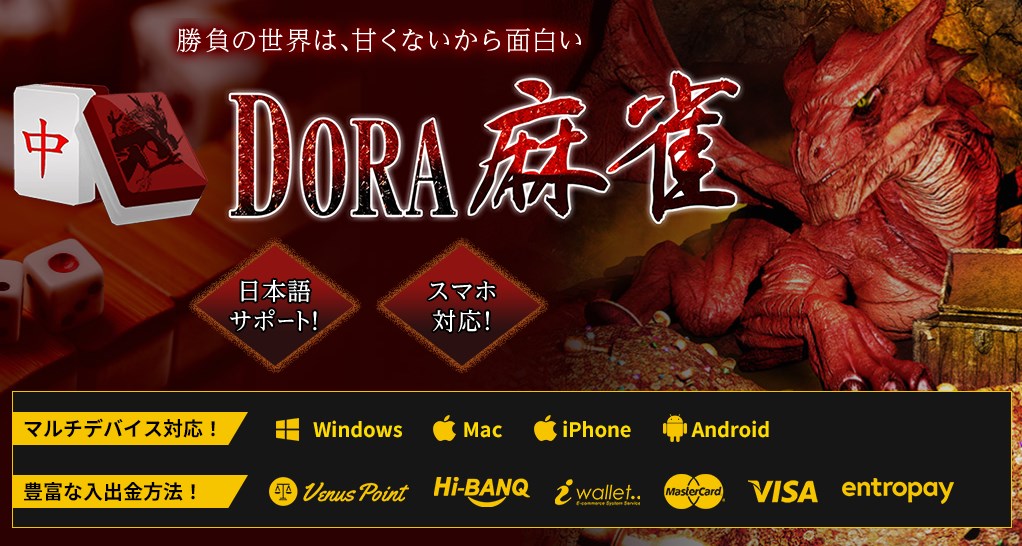 24時間いつでも手軽に麻雀を楽しめて、実力次第では、 お金も稼げてしまうDORA麻雀は本当に魅力的です |